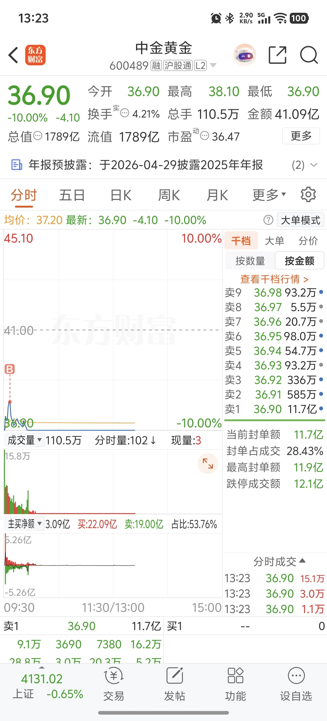 $中金黄金(SH600489)$ 求求你了快翻红吧,我把上学钱都拿出来梭哈了