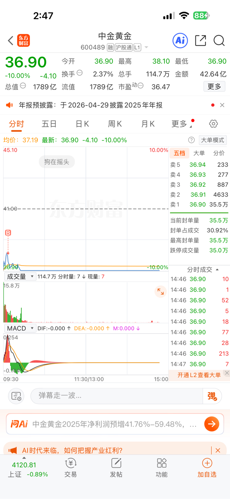 $中金黄金(SH600489)$ 就像心电图,抢救失败。没了