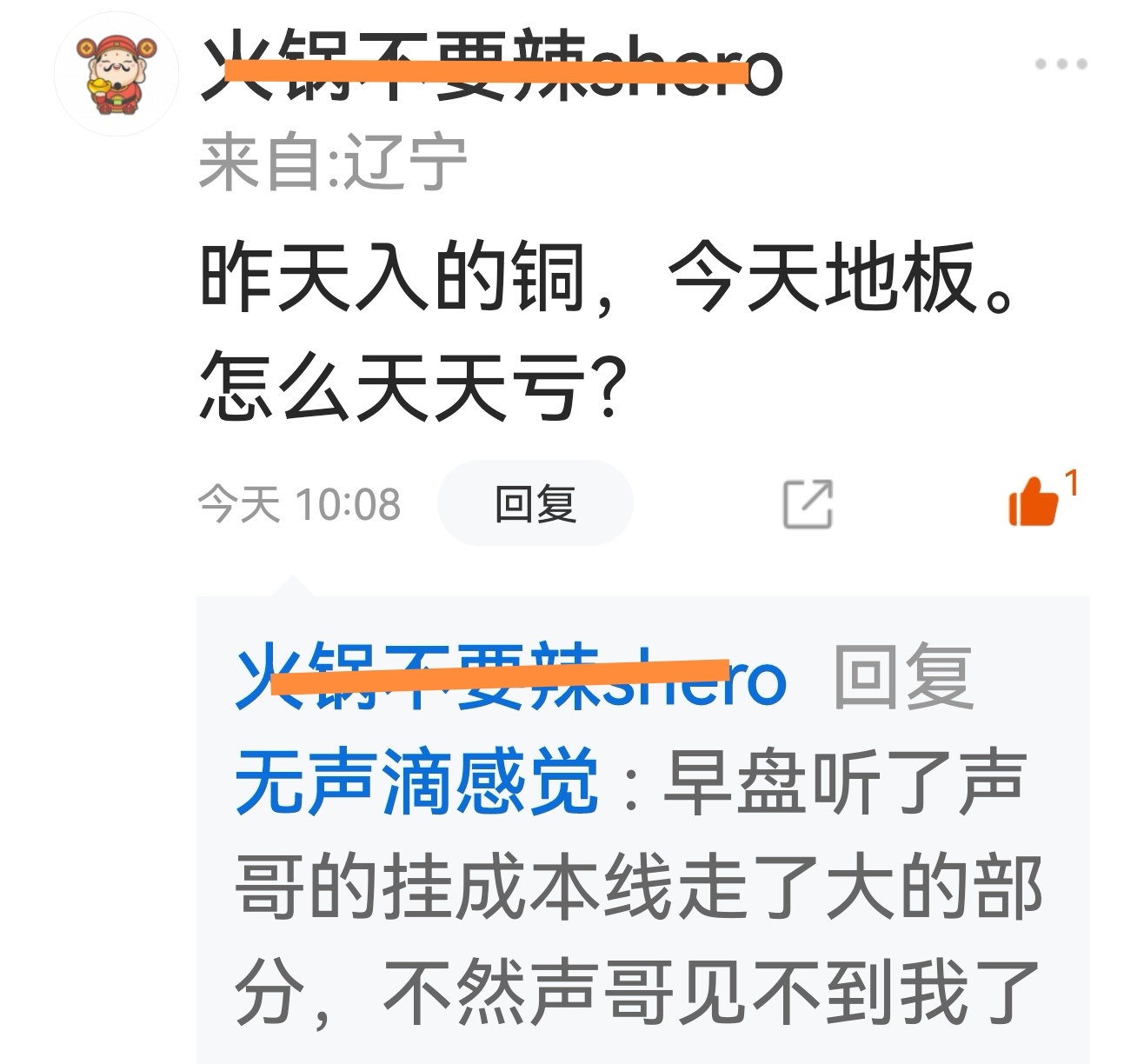 不过聊以安慰的是,有朋友盘前问江西铜业,我的回复让他逃过一劫。