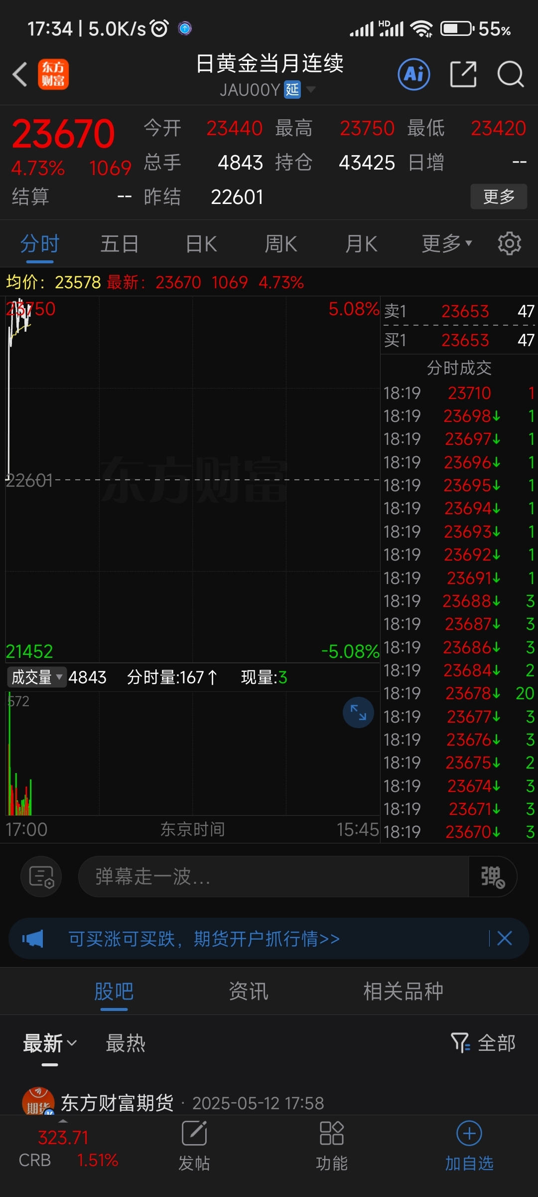 $中金黄金(SH600489)$ 日本黄金开始大反弹了,持续到明天早上,应该能带动国内市场