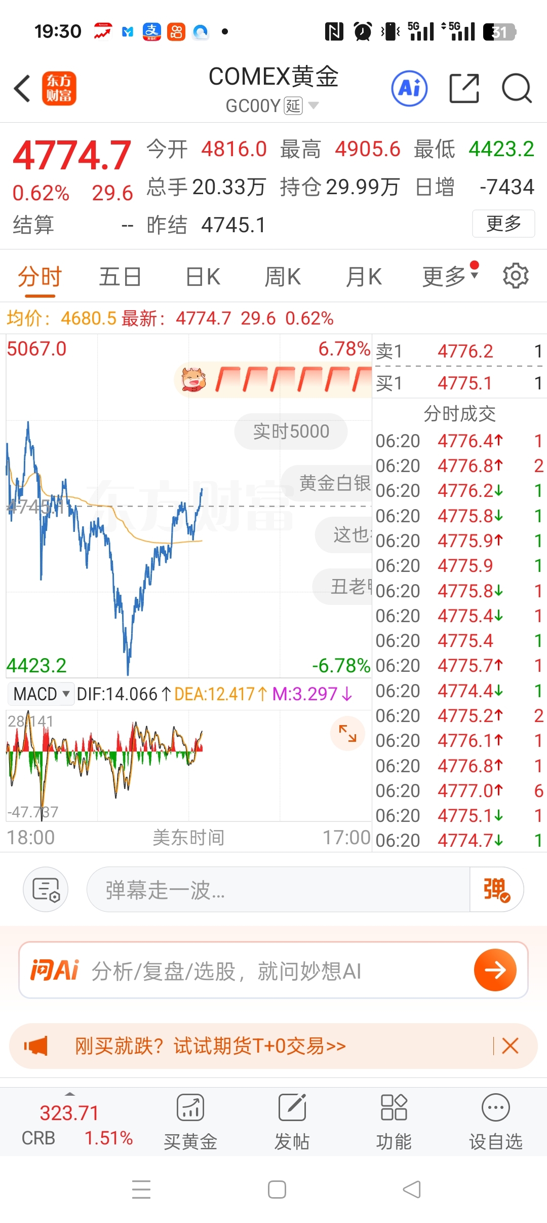 $中金黄金(SH600489)$ 国际黄金深V反弹大涨,明天有希望了。