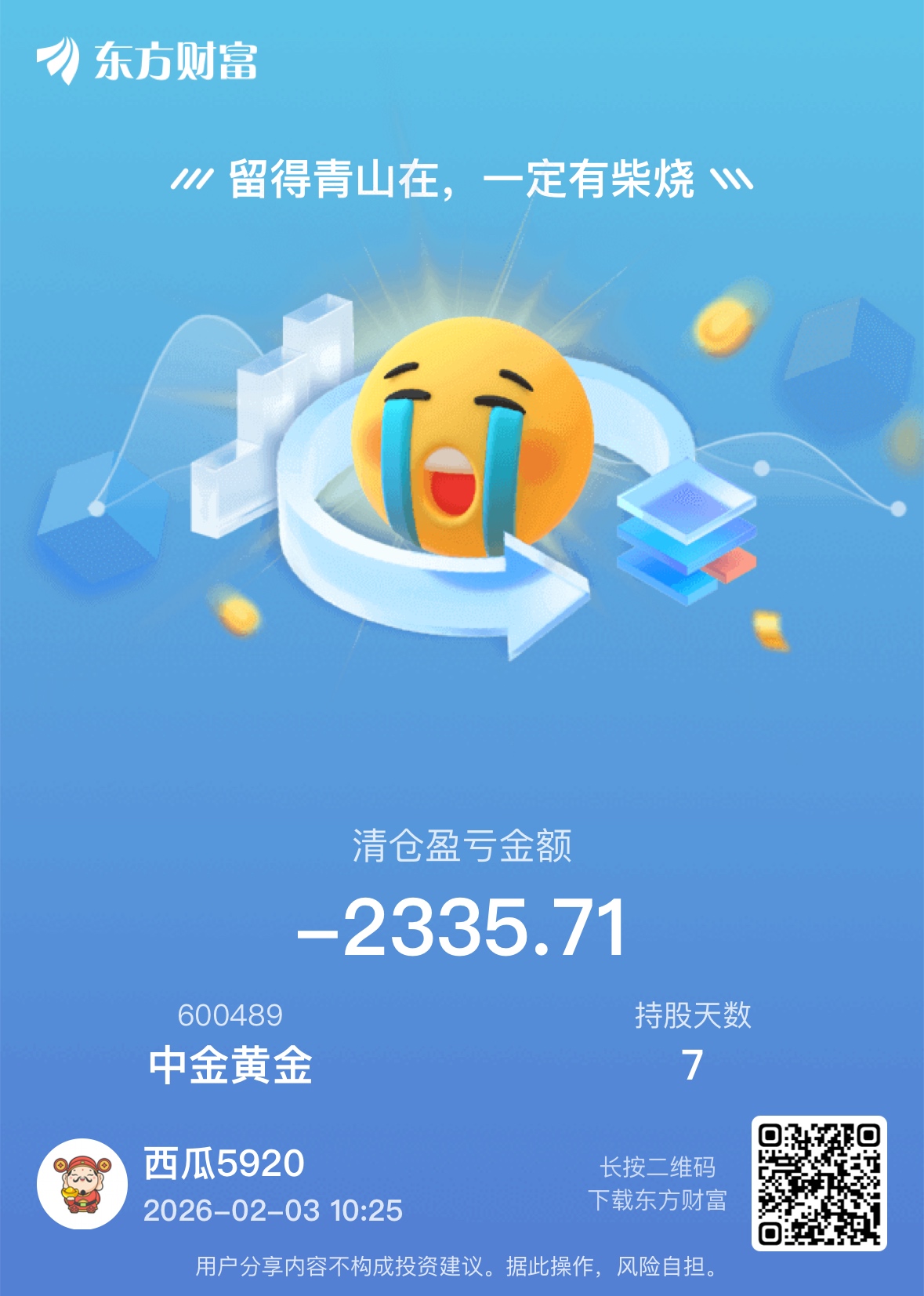 温馨提示: 1.根据《证券法》规定,禁止编造、传播虚假信息或者误导性信息,扰乱证券市场;2.用户在本社区发表的所有资料、言论等仅代表个人观点,与本网站立场无关,不对您构成任何投资建议。用户应基于自己的独立判断,自行决定证券投资并承担相应风险。《东方财富社区管理规定》
