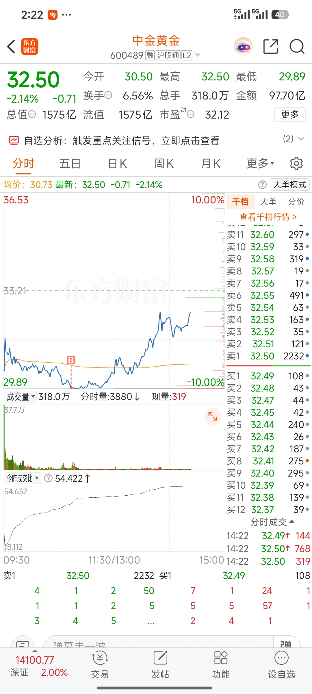 $中金黄金(SH600489)$ 早上没人要的时候买的 吃肉