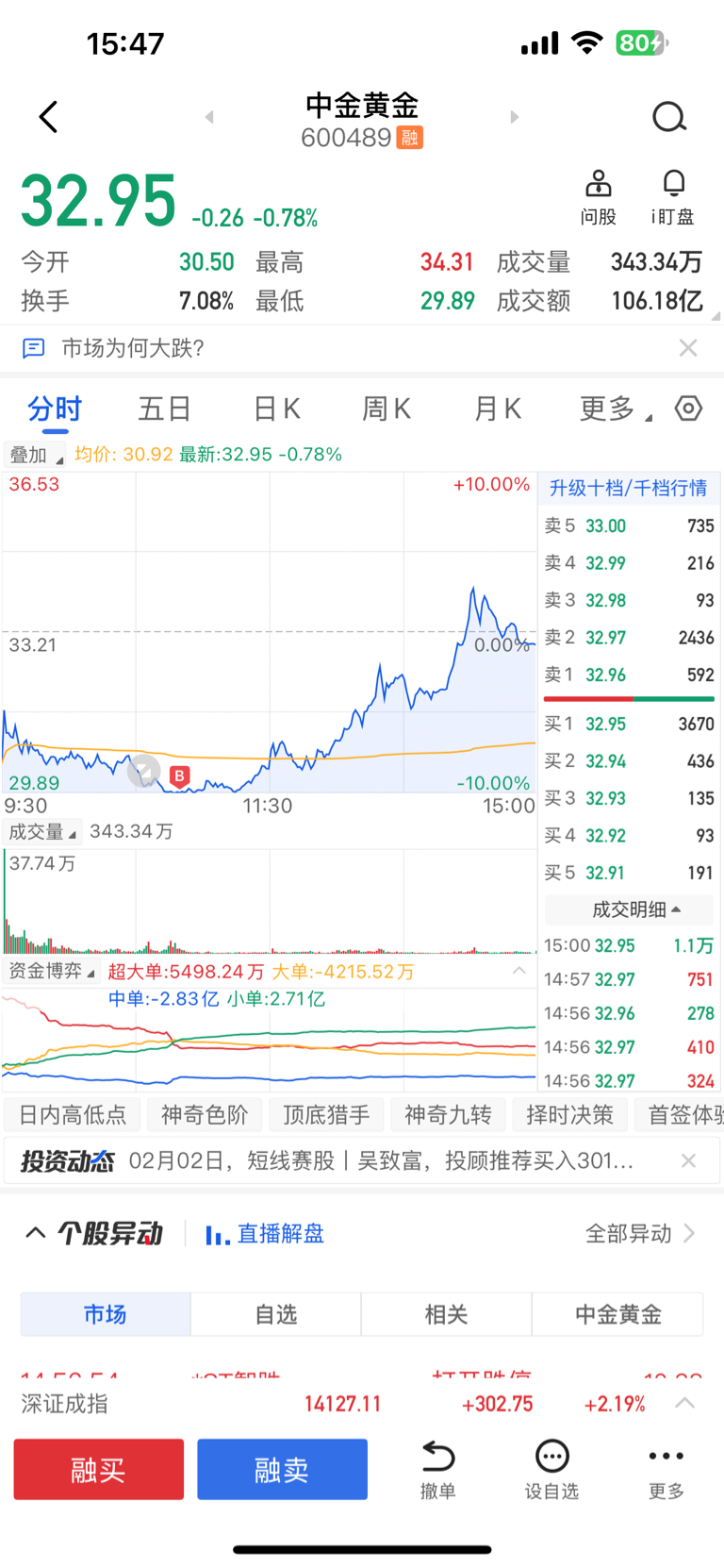 $中金黄金(SH600489)$ 没涨停,白欢喜