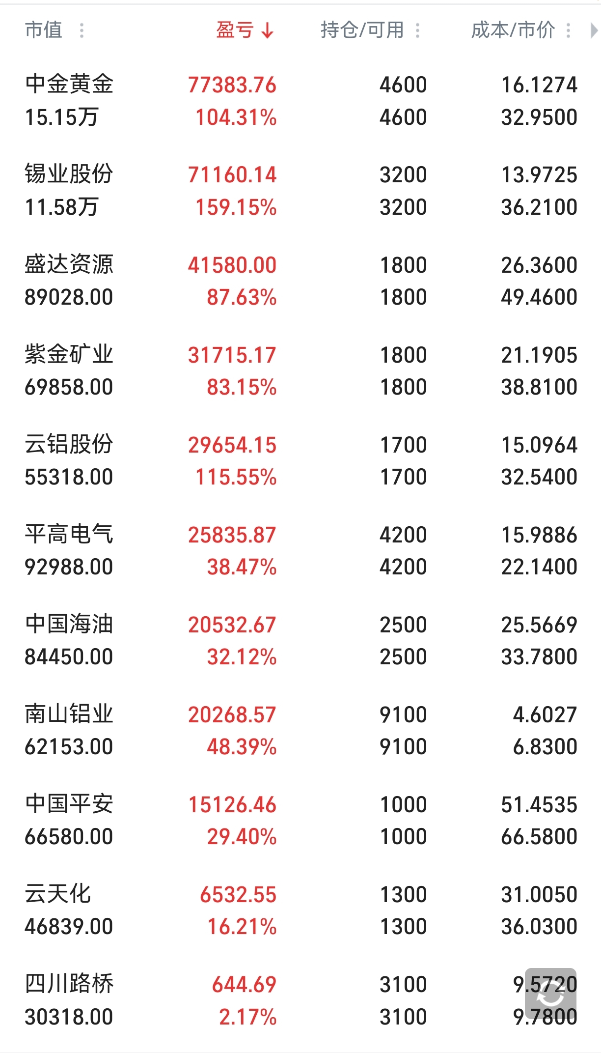 我去中金黄金今天绿了但是还是超过了紫金矿业历史表现锡业股份>云铝>中金>紫金~盛