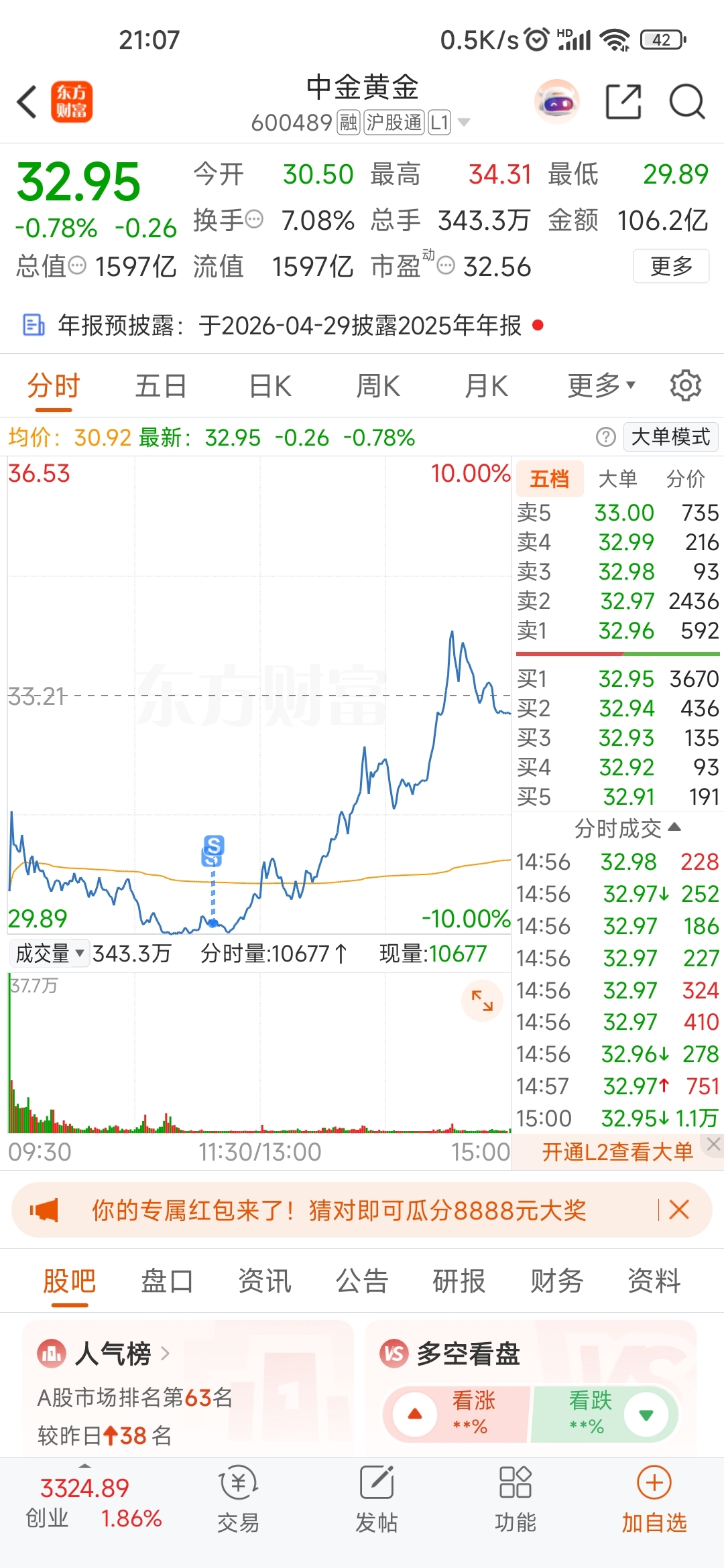 $中金黄金(SH600489)$