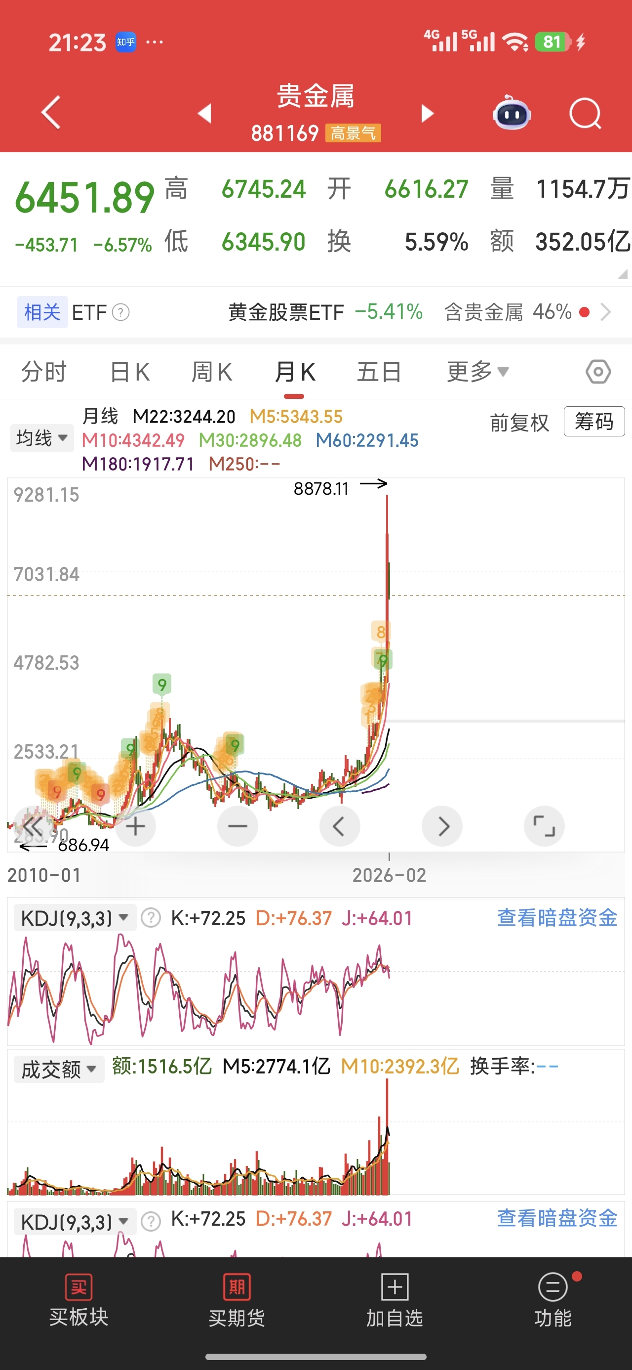 $中金黄金(SH600489)$ 贵金属这轮牛市结束了,实物黄金没准儿能回来,但是个股应该回不来了,比两轮牛市都高处这么多了