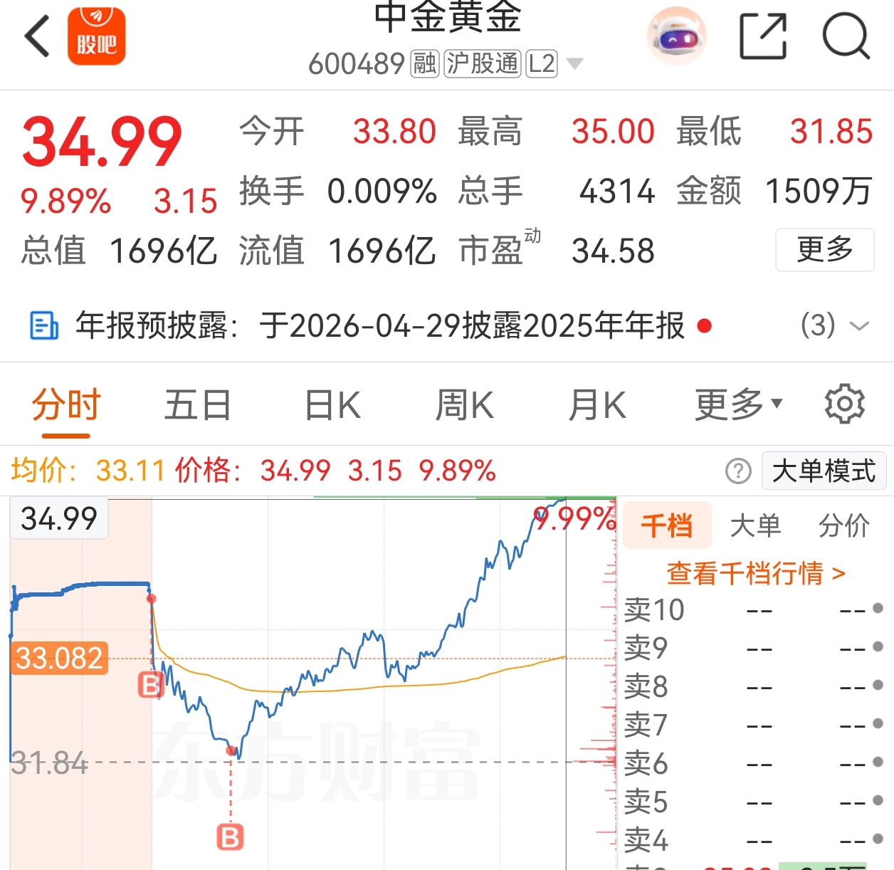 $中金黄金(SH600489)$ 我胆子是真大,我都佩服自己