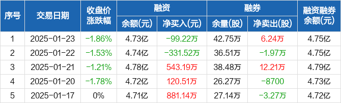 鹏欣资源:融资净偿还99.22万元,融资余额4.73亿元(01-23)