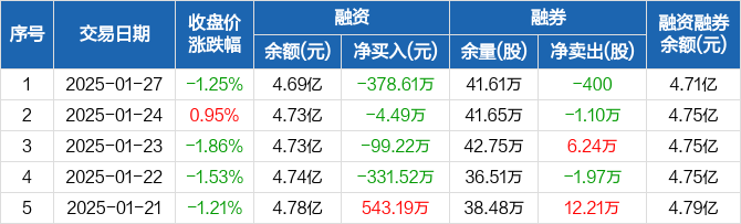 鹏欣资源:连续4日融资净偿还累计813.84万元(01-27)