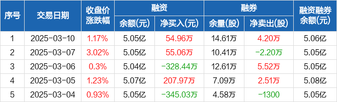 鹏欣资源:融资净买入54.96万元,融资余额5.05亿元(03-10)