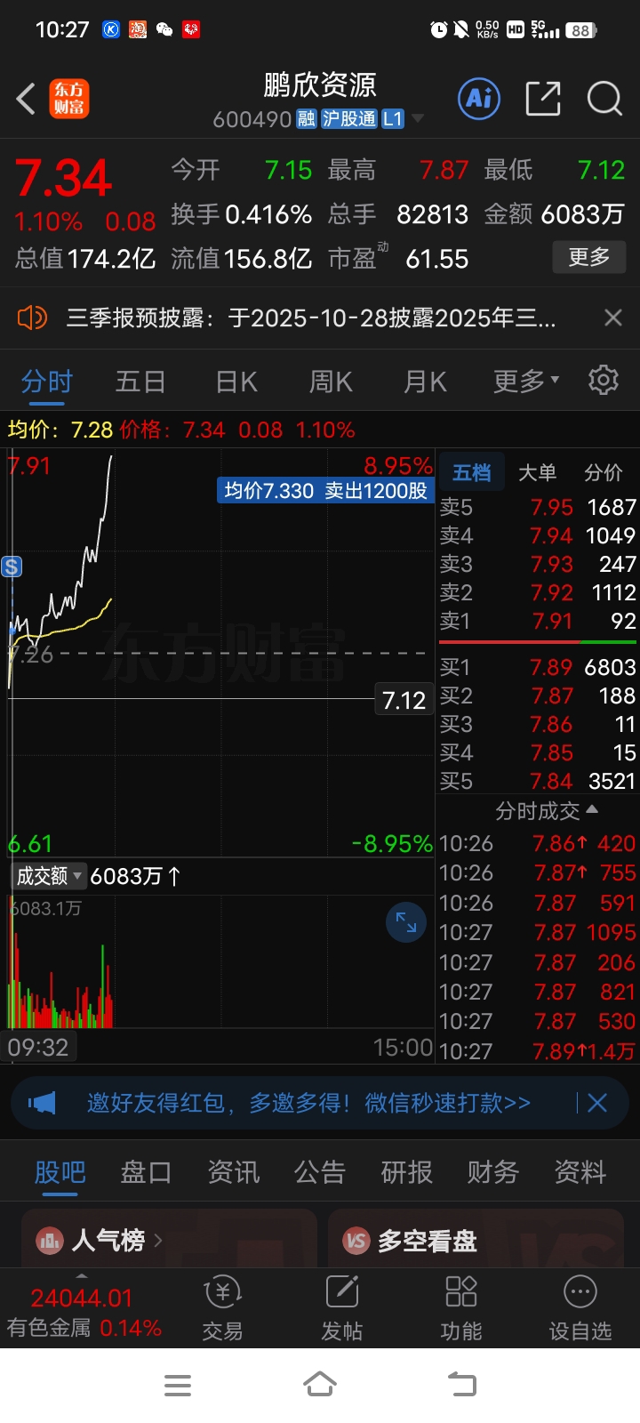 $鹏欣资源(SH600490)$ 好样的,,我认