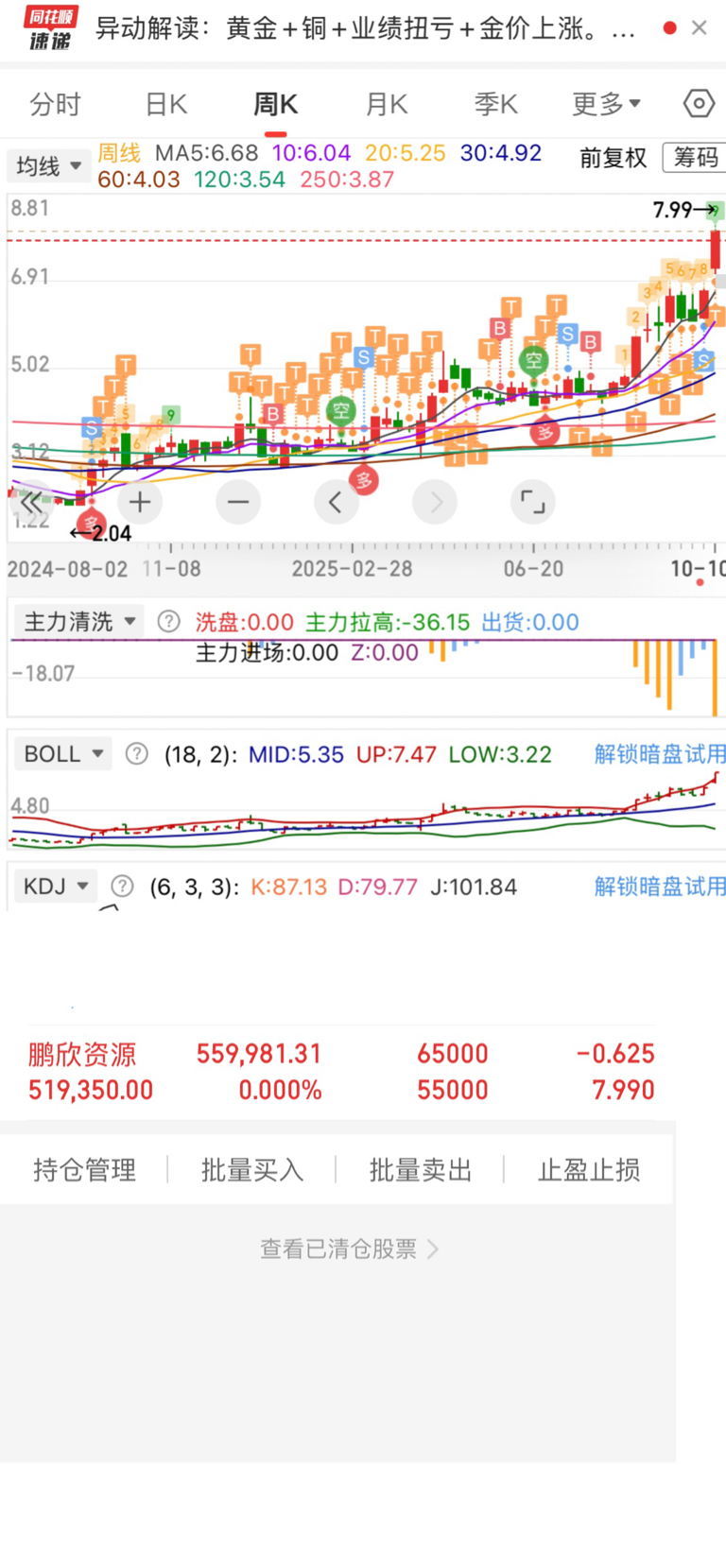 $鹏欣资源(SH600490)$ 拿了两年,今天卖出三分之一。留着利润滚动,信念一直在