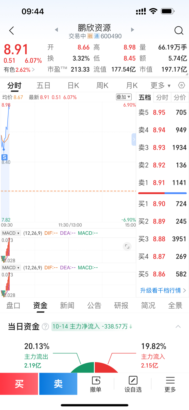 $鹏欣资源(SH600490)$ 唉 最低点卖了一半,主力太牛了