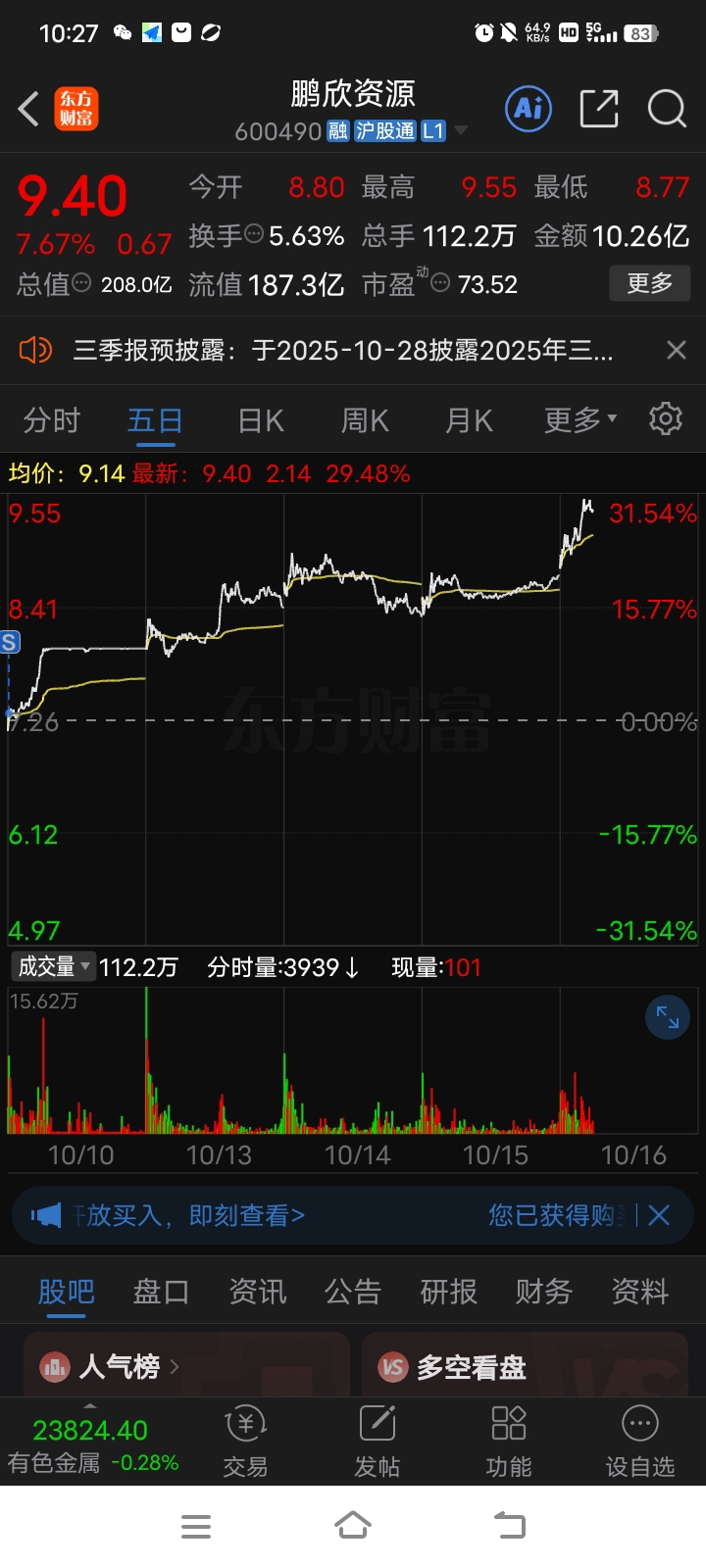 $鹏欣资源(SH600490)$ 错过了就是错过了没有什么好说的