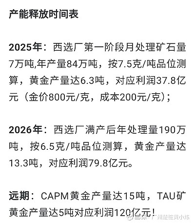 所有上市黄金企业中,利润率最高的是赤峰黄金。赤峰黄金2025年上半年矿产金6.75吨,扣非利润11.07亿,每克利润也200元不到。你倒是举出一家上市公司每克成本200元的给我看看。 //@周线趋势 :这个文章有点扯淡,什么成本200元/克,25上半年半吨黄金销售额3.7亿,利润才3200万,利润率才8.8%。公司的计划是今年产金1.8吨,明年2吨,后年也才4吨。另外还有一个重要因素,这个公司一向是完不成计划的,就今年来说目前已经大幅落后计划了,先看今年1.8吨能不能完成再吹吧。
