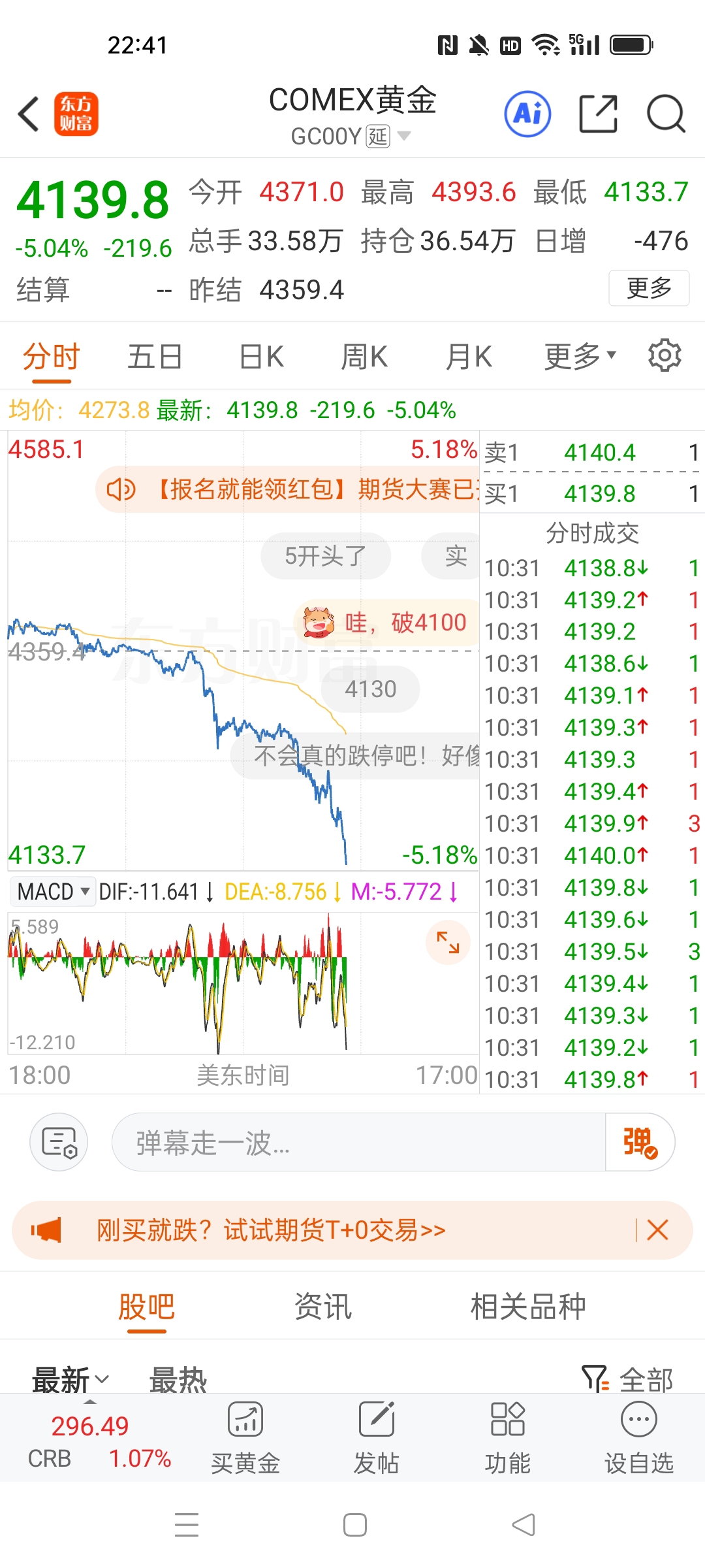 $鹏欣资源(SH600490)$ 晚上黄金大跌明天最少低开五个点起步了
