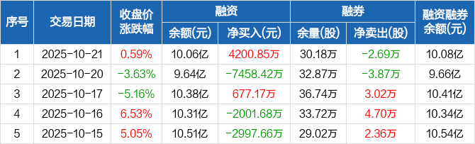 鹏欣资源:融资净买入4200.85万元,融资余额10.06亿元(10-21)