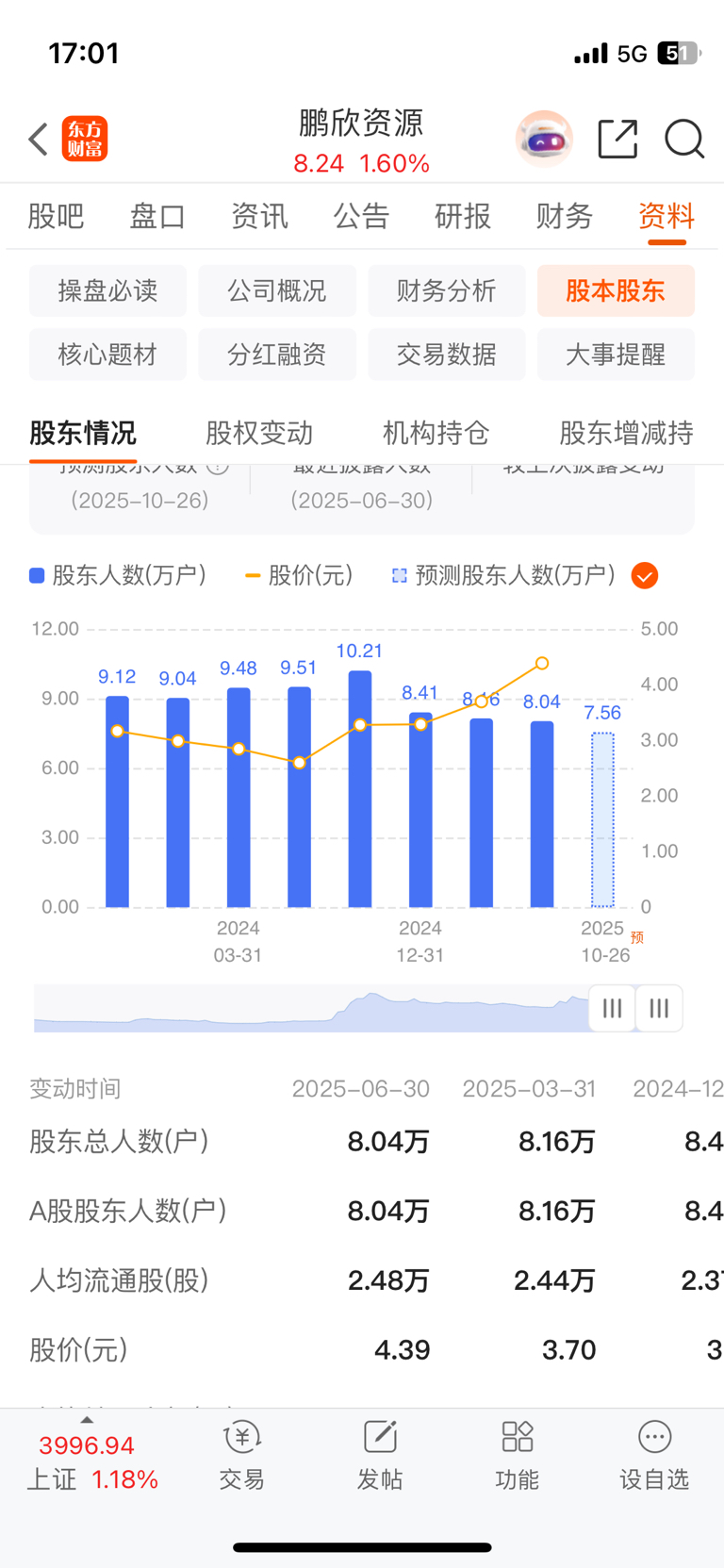 $鹏欣资源(SH600490)$ 股东数足矣说明一切,又被洗出去400人