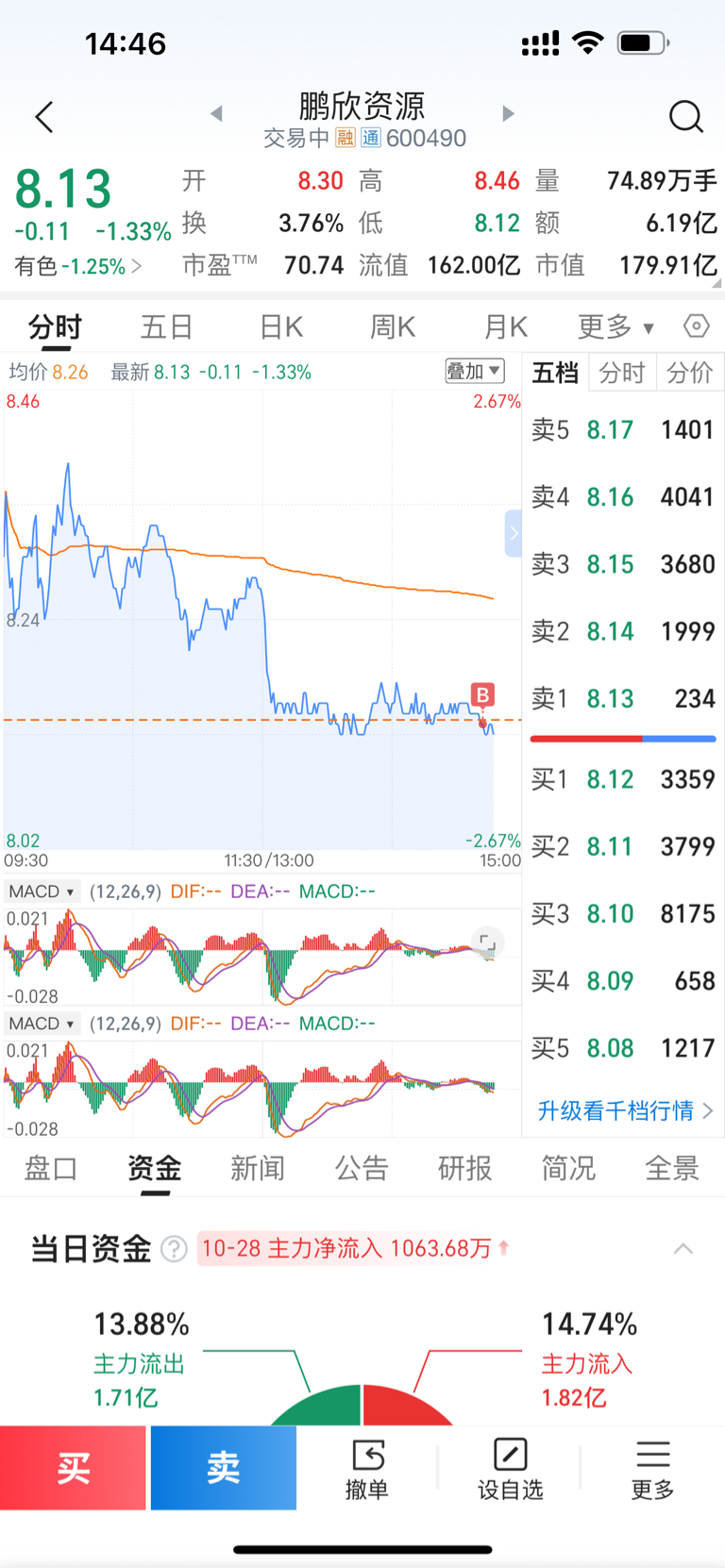 $鹏欣资源(SH600490)$ 杀回来了