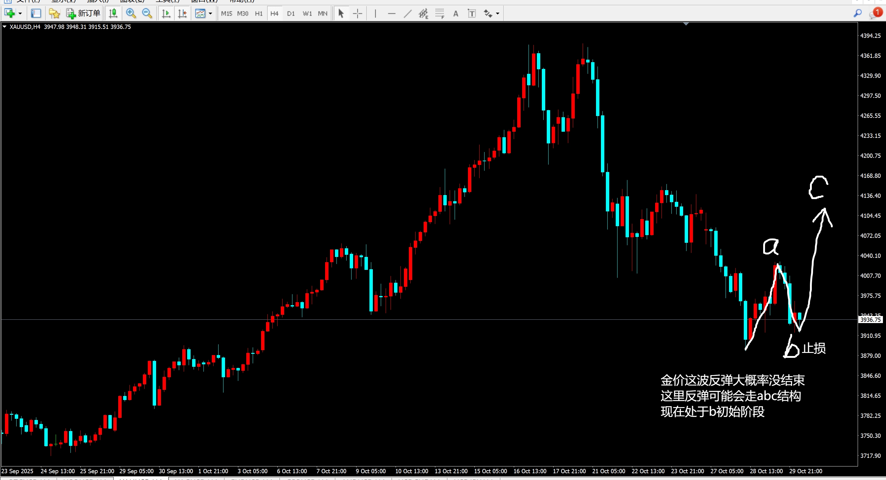 $鹏欣资源(SH600490)$ 金价大概率这里的反弹会是一个abc结构
