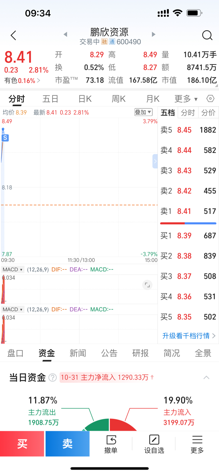 $鹏欣资源(SH600490)$ 赚一点就跑