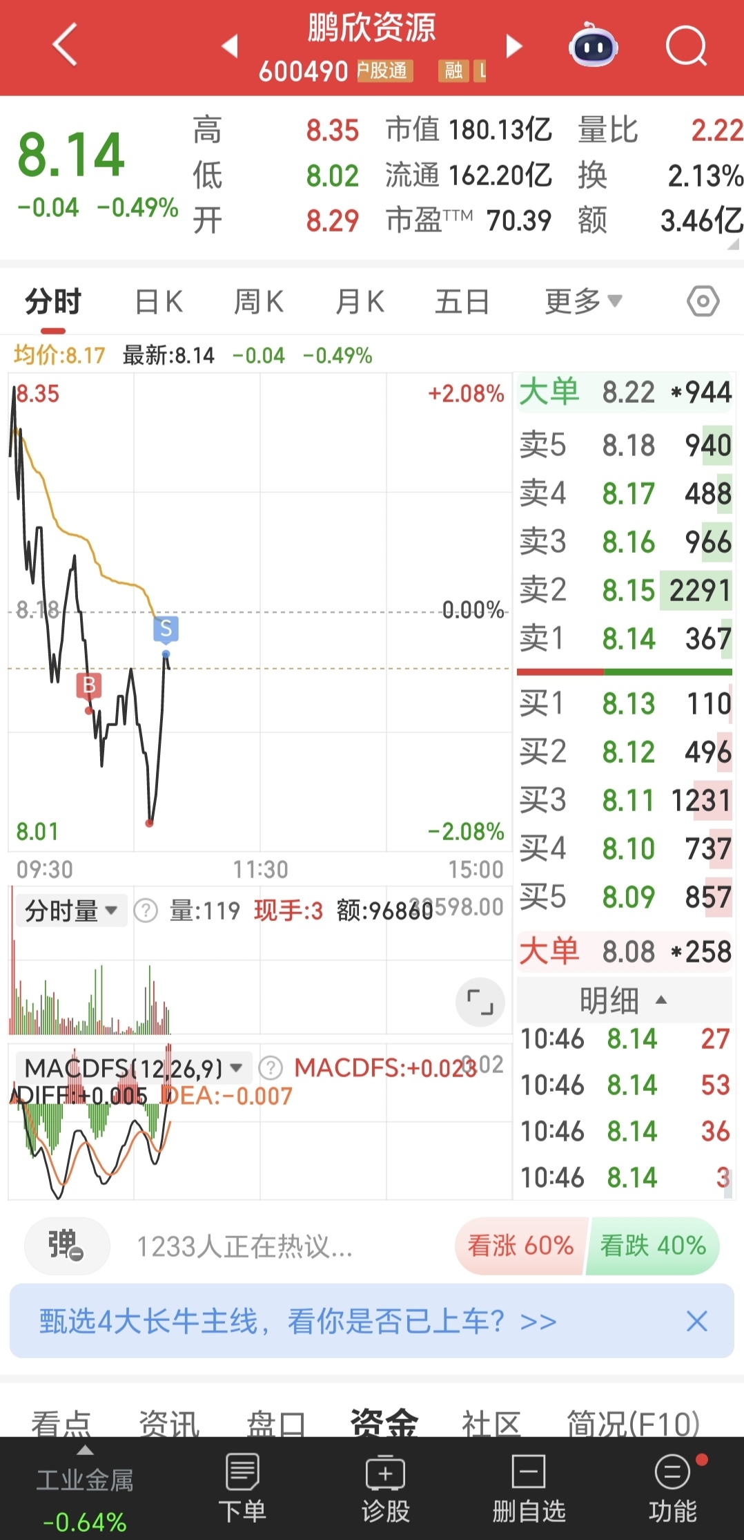 $鹏欣资源(SH600490)$ 贪婪是一切罪恶的根源,我出了,你总该好好涨吧!