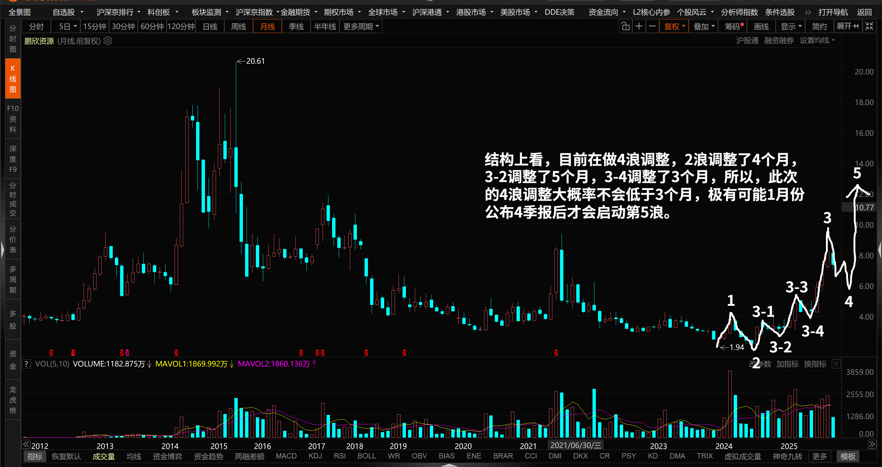 盲猜一下:极有可能调整到明年一二月份公布完四季报和年报之后才会结束4浪调整,释放奥尼金矿第二条产线W矿井的开采进度和金条的产量再配合金价的继续上涨股价向上突破。