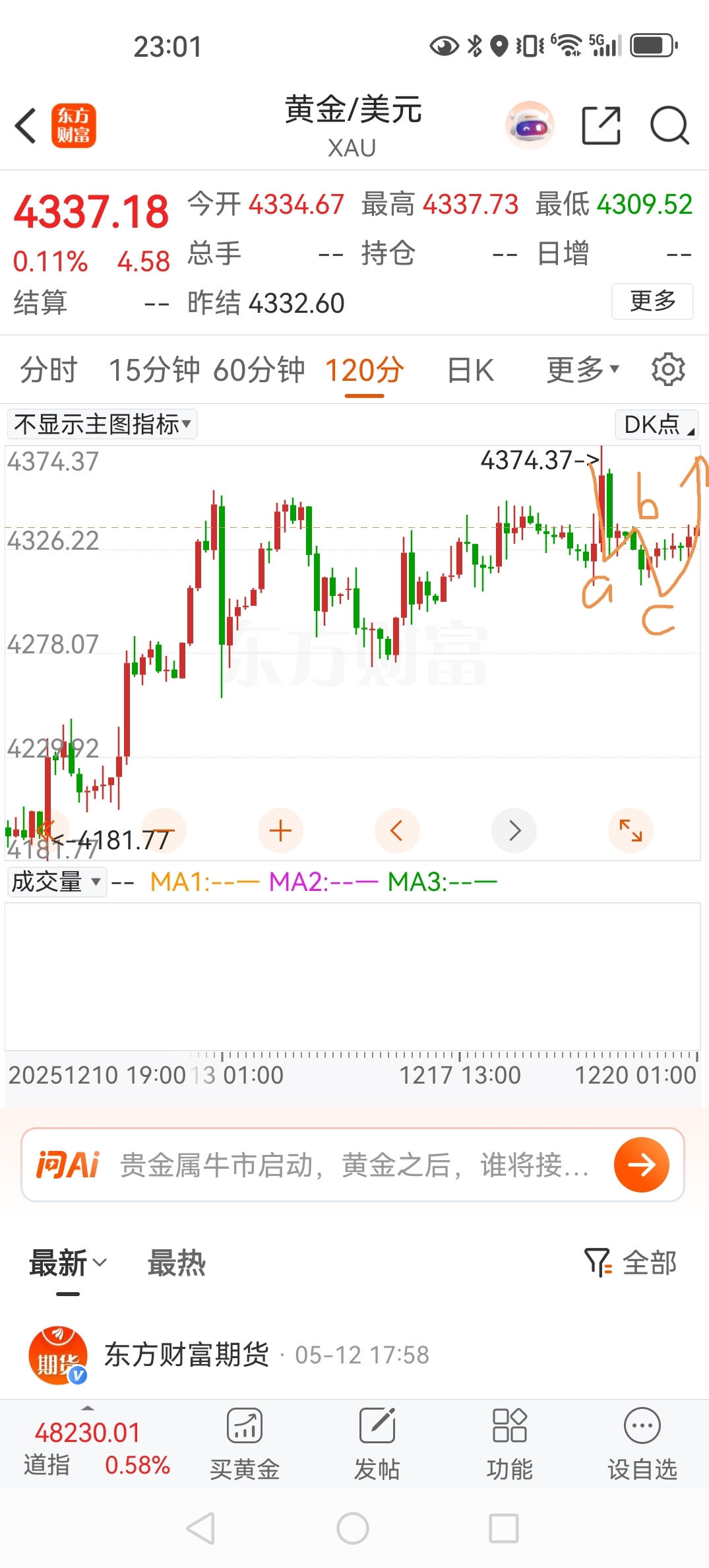 金价这个abc调整差不多结束了下周应该就是向上突破了