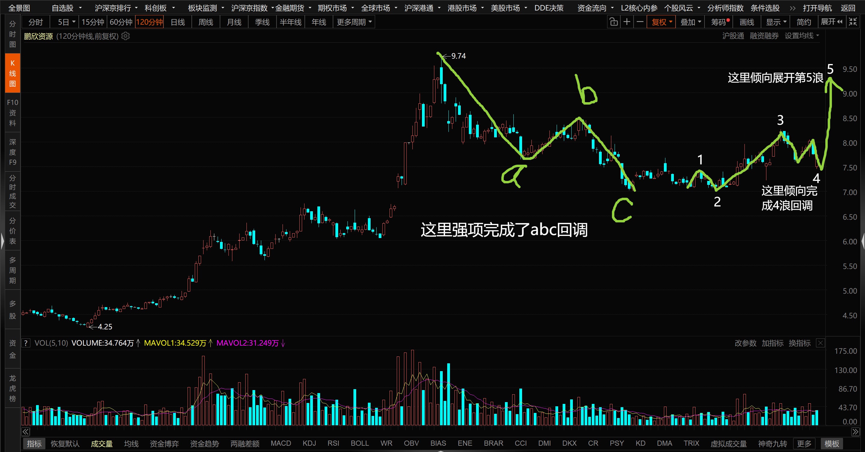 $鹏欣资源(SH600490)$ 9.74这里的回落完成abc的判断不变