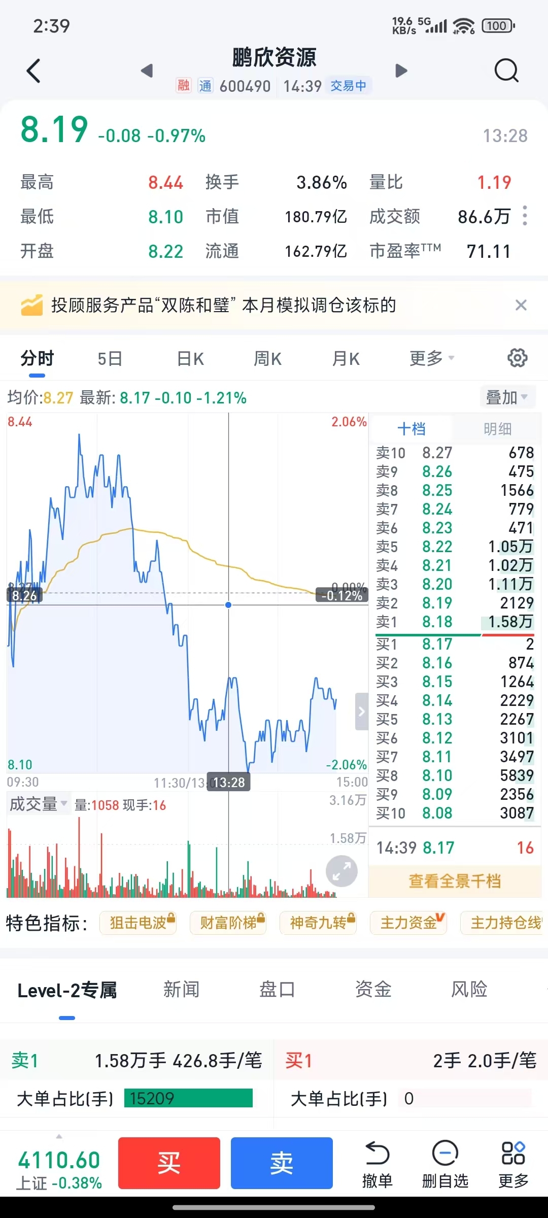 $鹏欣资源(SH600490)$ 全是卖单,主力逗散户呢!