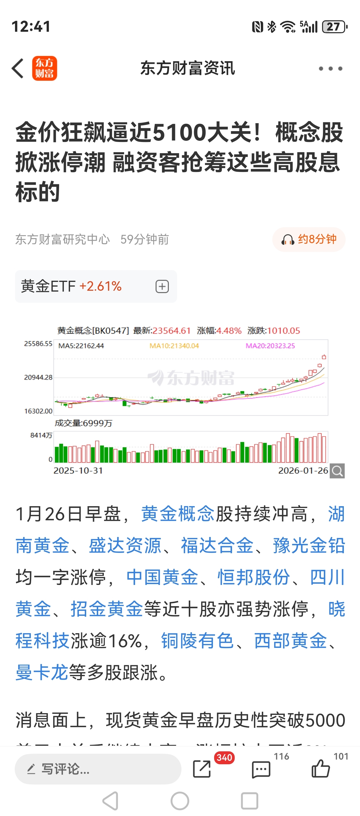 $鹏欣资源(SH600490)$ 黄金逼近5100
