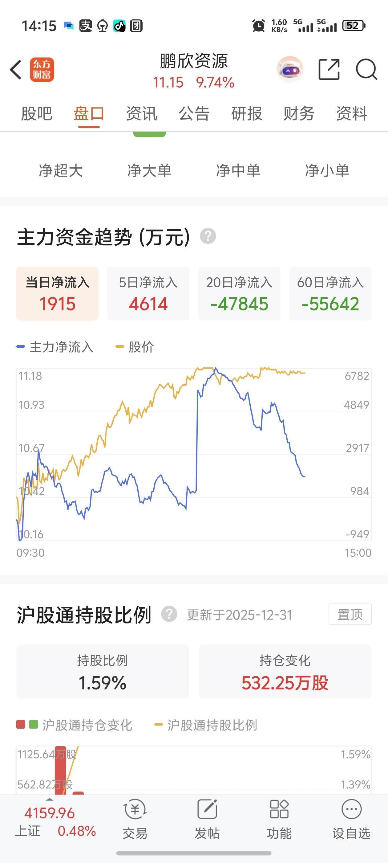 $鹏欣资源(SH600490)$ 这个家伙怎么一直在出货呀?