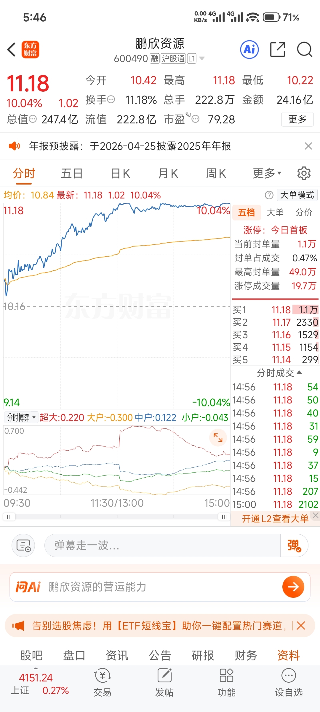 $鹏欣资源(SH600490)$ 收盘价11.18 换手率11.18% 这么巧的嘛