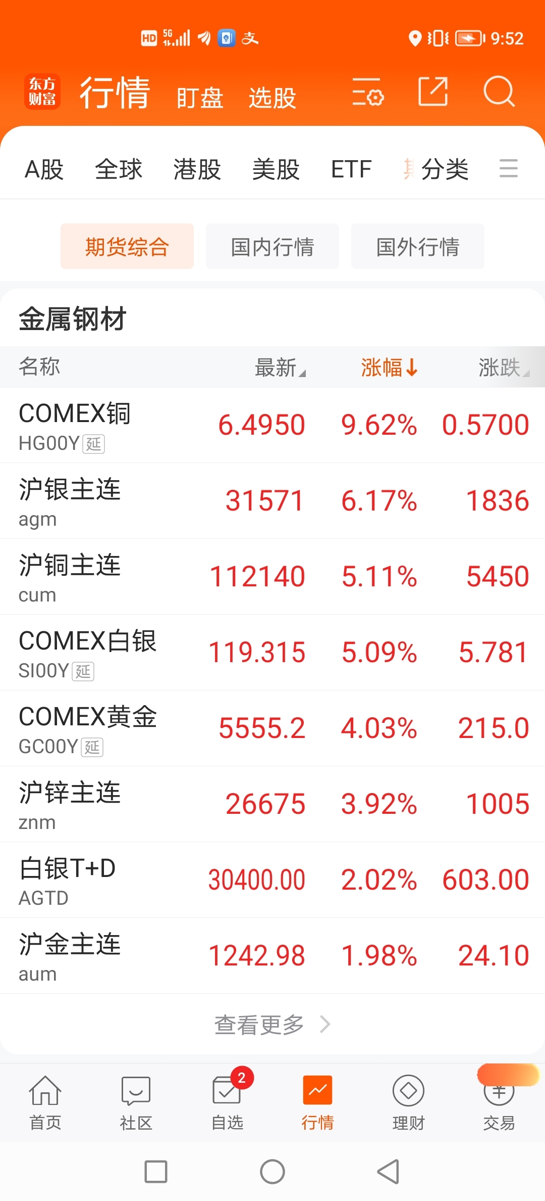 期货市场铜金继续暴涨,明天没有理由再压了