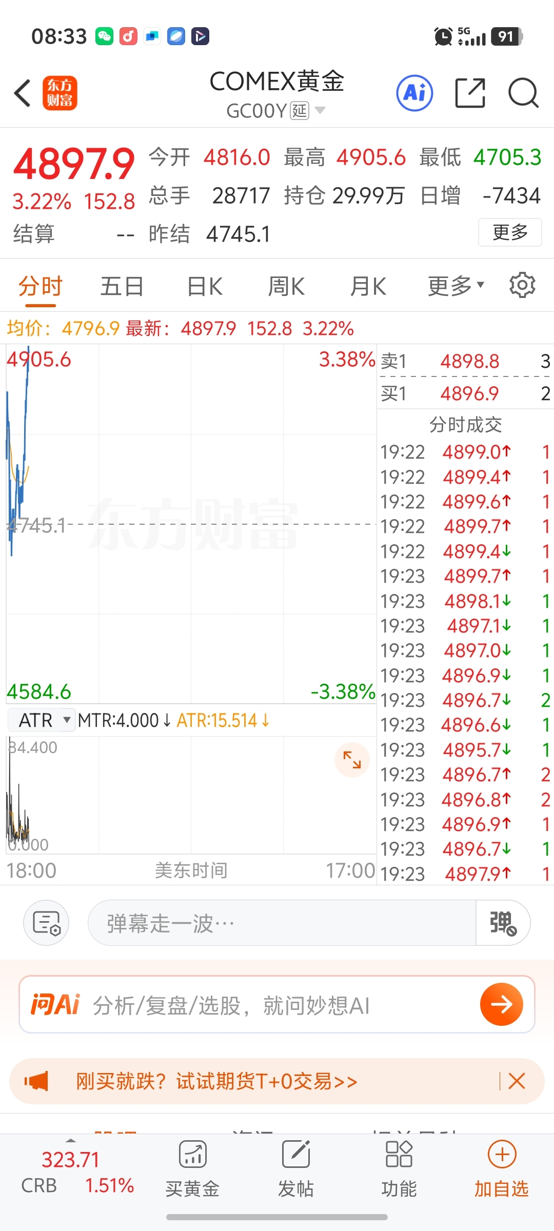 $鹏欣资源(SH600490)$ 黄金暴涨