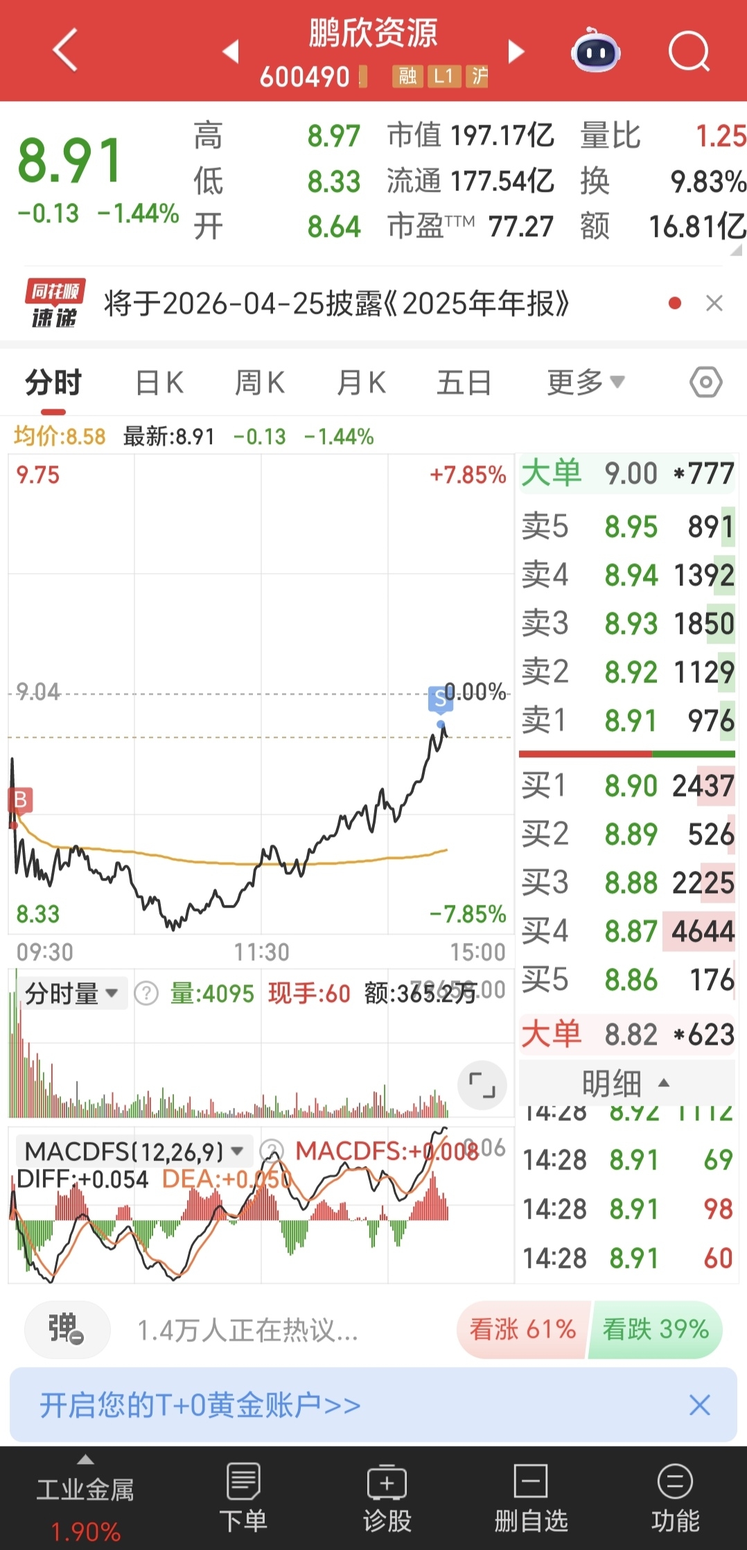 $鹏欣资源(SH600490)$ 每天都来走个过场。