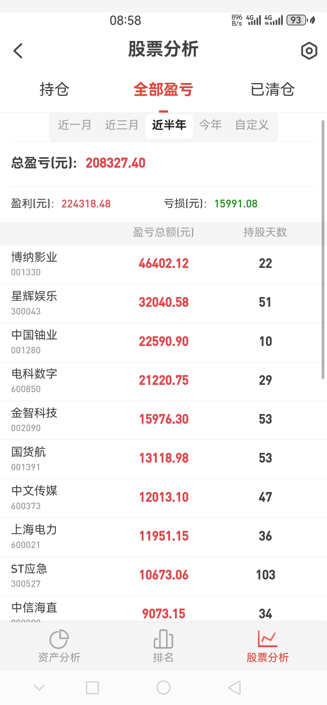 $鹏欣资源(SH600490)$ 这半年收益率30%也只是跑平指数,唉,悲催