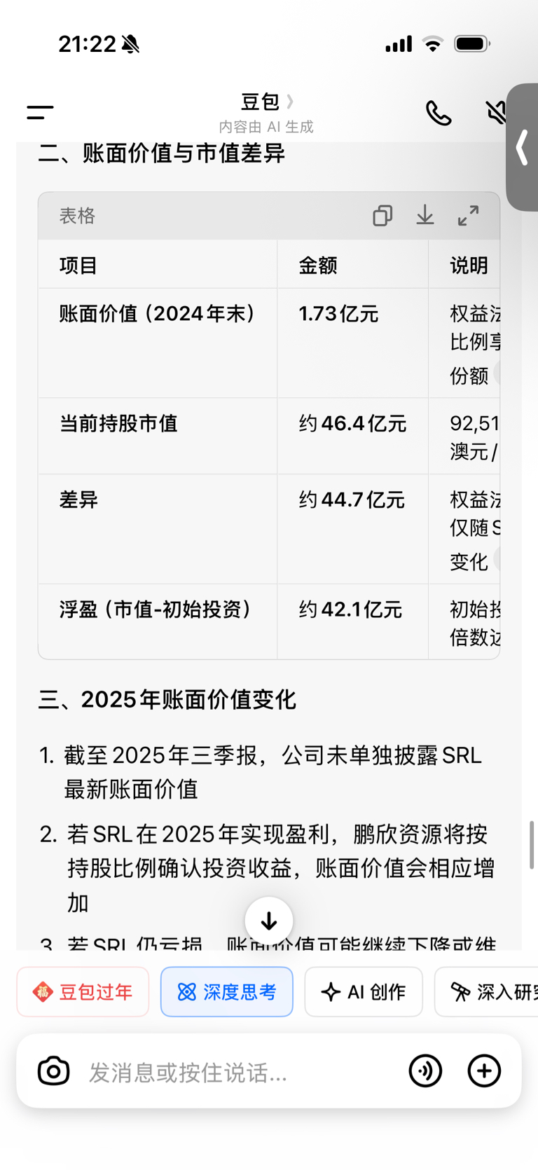 $鹏欣资源(SH600490)$ 澳洲矿增值三十多亿