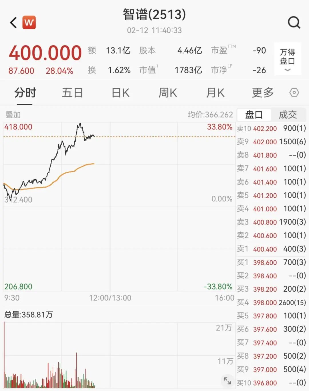 2月12日,智谱开盘走高,涨幅一度扩大至33%,最新报400港元/股。