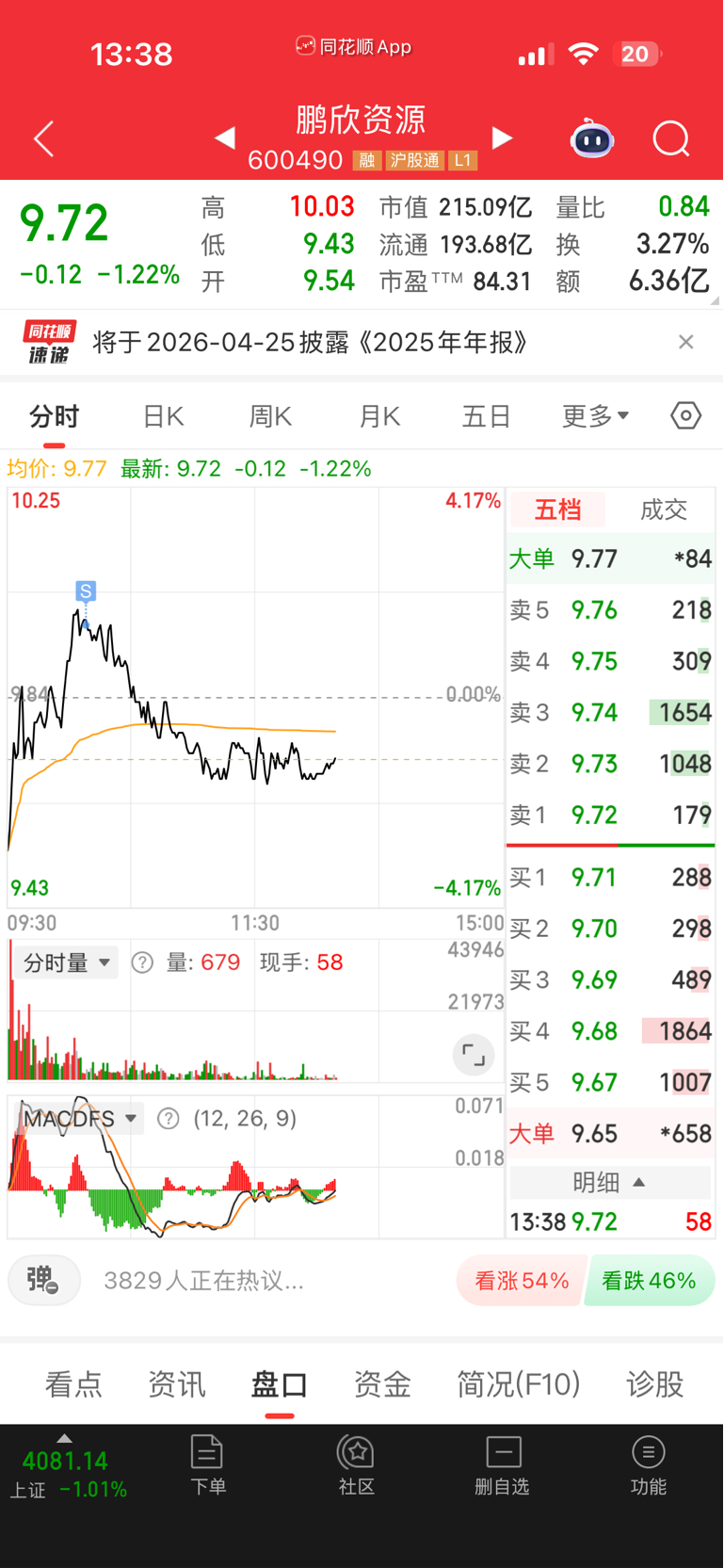 $鹏欣资源(SH600490)$ 企稳了,买回来