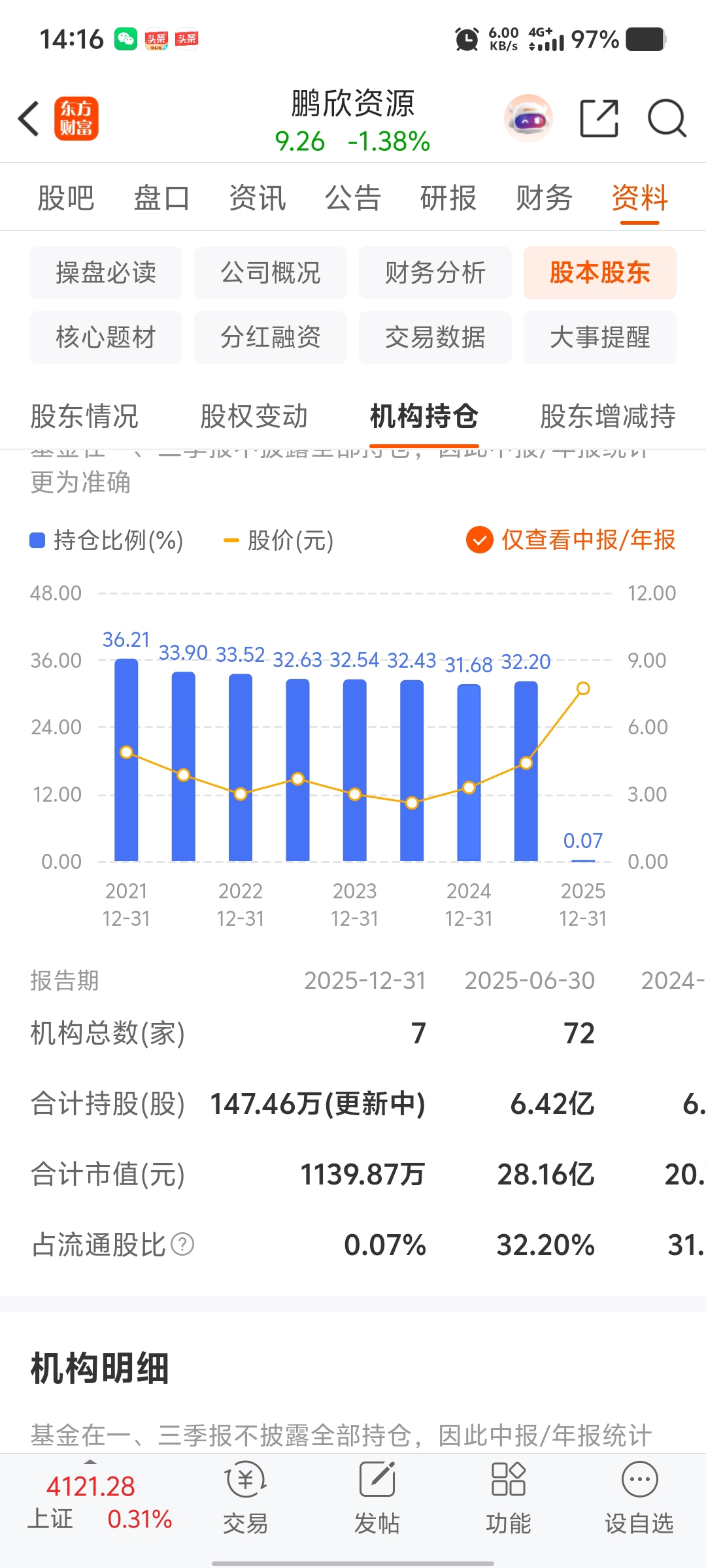 $鹏欣资源(SH600490)$ 机构2025年跑完了我不信没有大雷