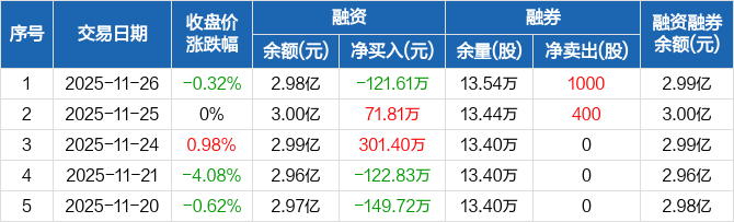 龙元建设:融资净偿还121.61万元,融资余额2.98亿元(11-26)