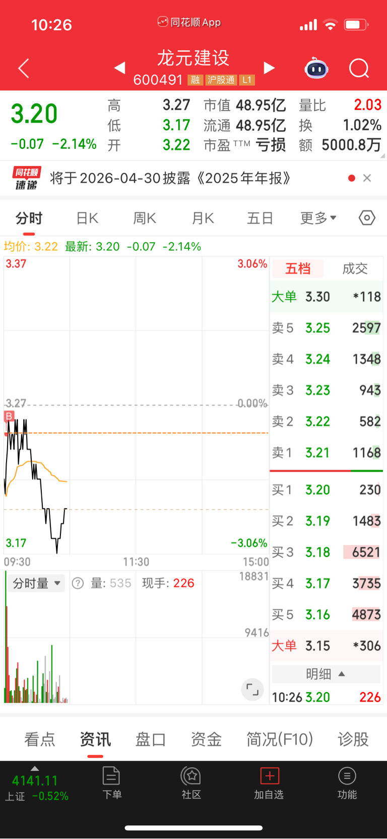 $龙元建设(SH600491)$ 刚进就吃面啊?