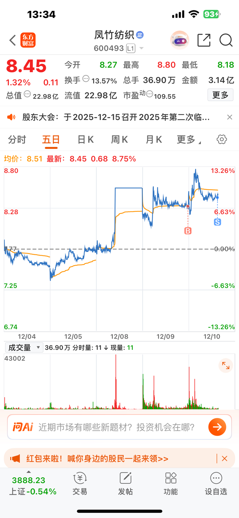 $凤竹纺织(SH600493)$ 88了。正二个点买了武夷,抓了四只,才抓对一只。。。