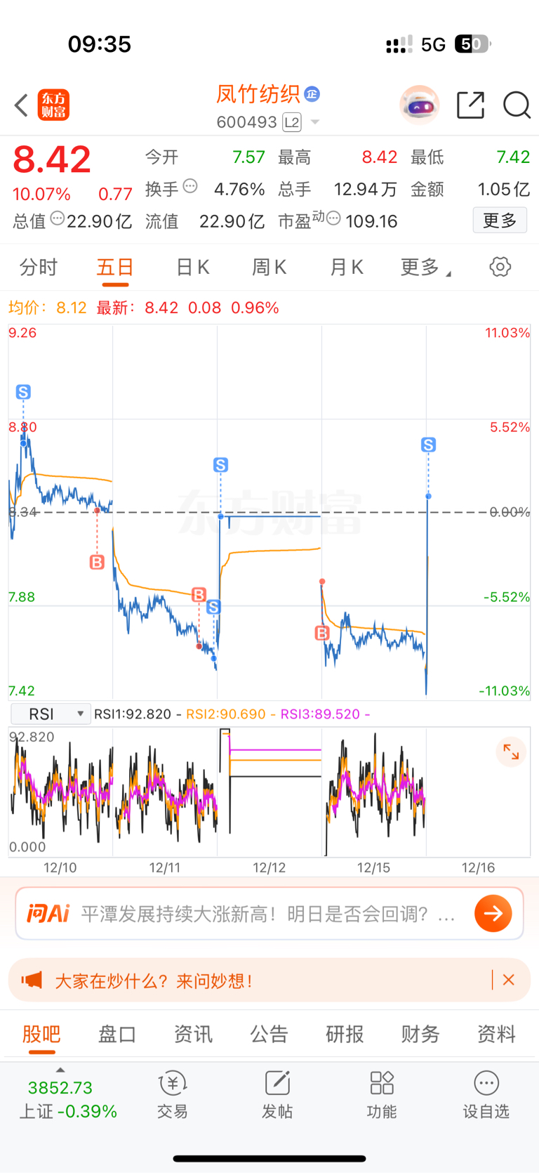 $凤竹纺织(SH600493)$