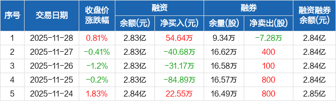 晋西车轴:融资净买入54.64万元,融资余额2.83亿元(11-28)
