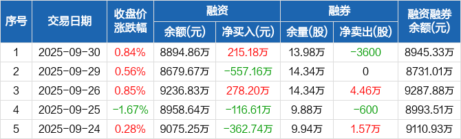 精工钢构:融资净买入215.18万元,融资余额8894.86万元(09-30)