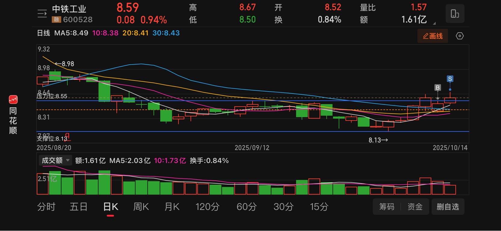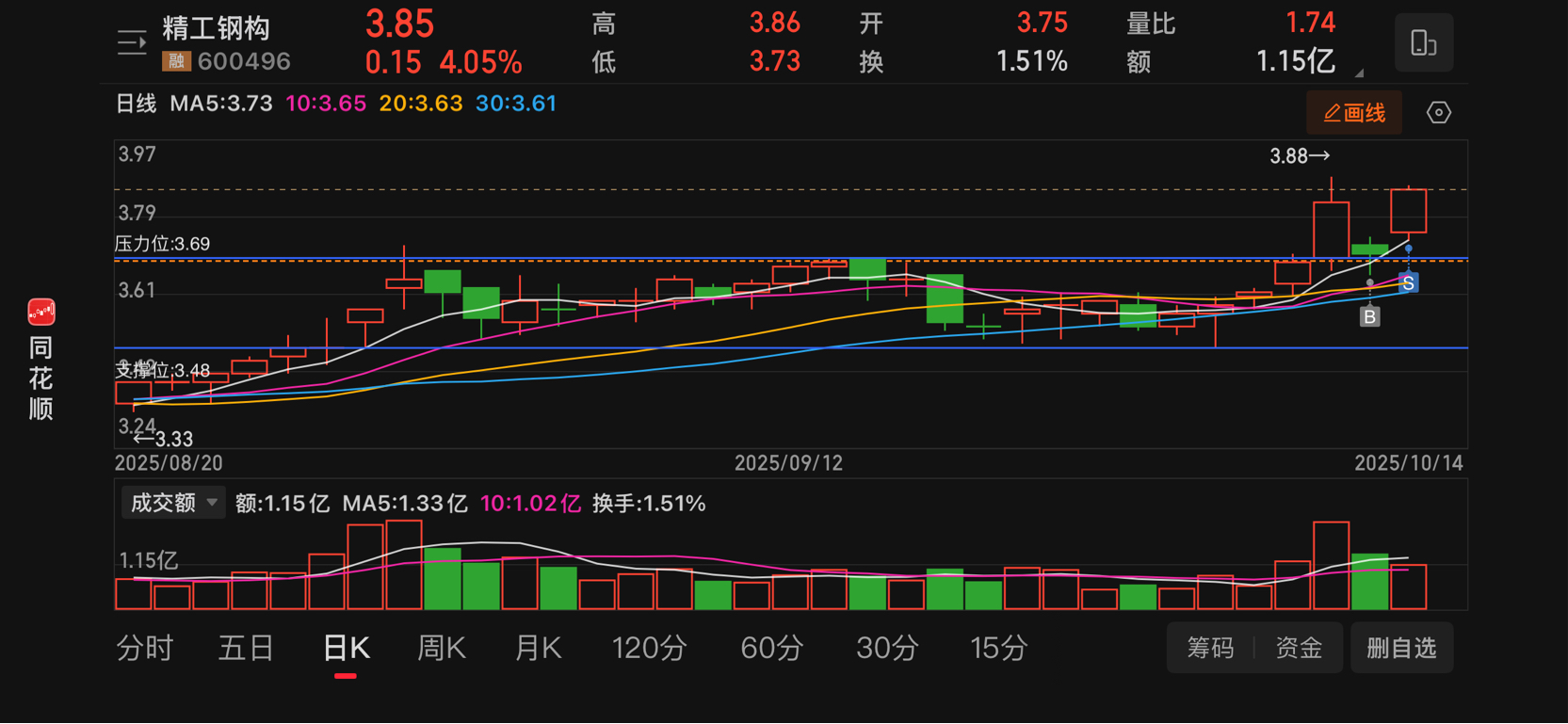 3.84出了一半目前获利4.5个点剩下的下午看情况8.60出完了获利2个点今天还