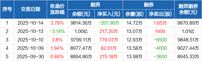精工钢构:融资净偿还201.96万元,融资余额9814.36万元(10-14)